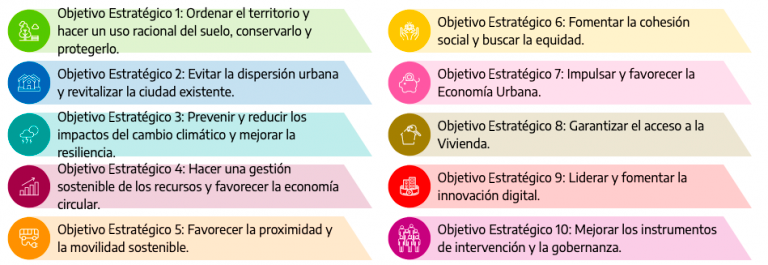 Junto a ellos se han de considerar los 10 objetivos estratégicos definidos en la Agenda Urbana Española , definida como una de las “políticas palanca” para la implementación de la Agenda 2030 en España.